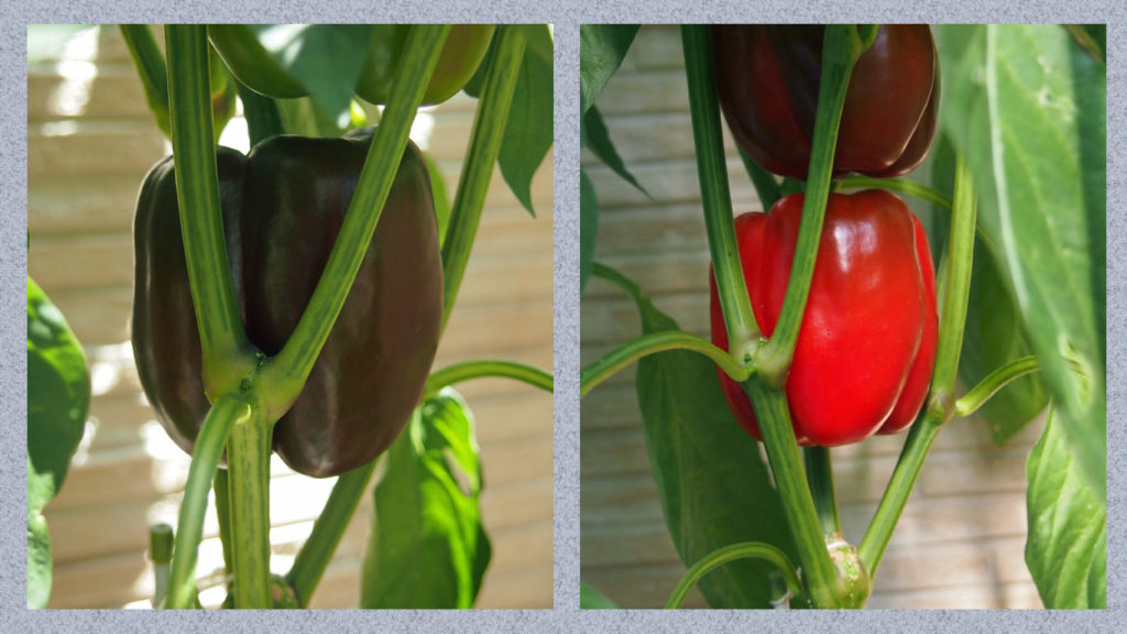 発芽から115日頃、パプリカの実が色づき始めました(下の写真右)。発芽から約123日後に赤くなったパプリカを収穫することが出来ました(下の写真右)。
